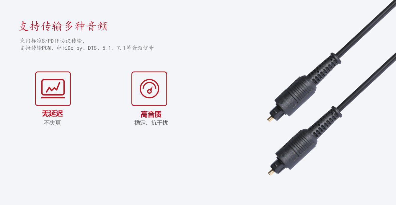 ● 1.傳輸效率高,以光脈沖的形式來傳輸數字信號,給您帶來不一樣的聽覺體驗;